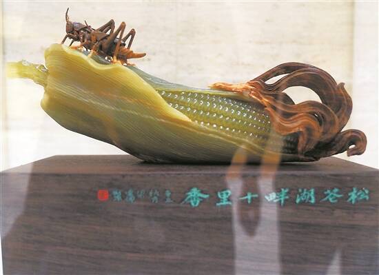 其中,玉雕作品《步步高》采用了“巧雕”技法,该技法是10多年前本地行业首次使用,最大程度利用了石材原料因材施艺,开拓了石材工艺品雕刻的新品类,迅速成为云浮石艺创作的主流。此外,2021年由“梁建坤技能大师工作室”师生共同创作的《一盏马灯照亮长征路》《春天的声音》等红色题材系列作品也在展览中亮相。