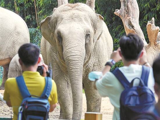 羊城晚报讯 记者黎存根、邓勃、汤铭明摄影报道:8月12日是第11个世界大象日,为进一步提高公众野生动植物保护意识,广州长隆野生动物世界邀请亲子家庭入园,贴心打造近距离观察大象的机会。大小朋友化身“大象体验官”,参观大象日常清理、体检、修蹄等多项工作,还参与大象比体重等趣味互动,了解长隆大象保护的历史与成果,共同呼吁人们关注大象种群的生存现状与栖息地保护(上图)。