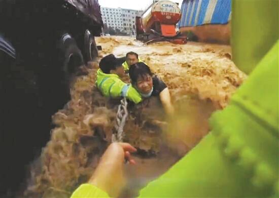 在洪水急流中经历6次尝试,跌倒9次,英德5名警务人员最终成功救出被困群众 (视频截图)