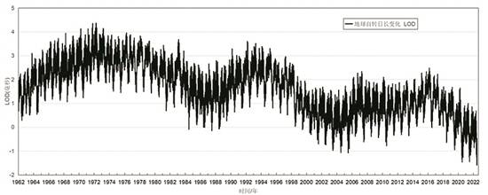 1962年至2022年地球自转日长变化(LOD),单位:毫秒