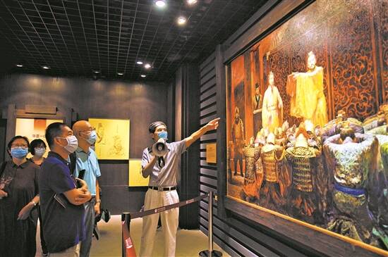 羊城晚报讯 记者李春炜、实习生舒茗摄影报道:“南越是如何归顺汉朝的?陆贾出使南越时,为何筑泥城而居?西场村与陆贾有何关联?……”8月13日,广州市荔湾区迎来了一群特殊的街坊——广州历史爱好者。“讲古人”陆华廷带领一众人员,在陆大夫纪念亭前、西场村纪念碑侧、荔湾湖的陆贾铜像旁、南越国王宫博物馆内,开展了一场缅怀陆贾的爱国主义活动。