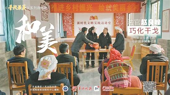 2021年12月,在拍摄“寻找最美法官”系列微电影《和美》篇时,为了契合人物设定与地域特性,拍摄地点定在了粤北瑶寨中。粤北瑶寨地属山区、地势复杂,摄制组车辆无法直达拍摄现场,设备器材全靠人力搬运。“屋漏偏逢连夜雨”,当时寒流袭粤,气温骤降,全组人只能顶着冷风坚持拍摄。