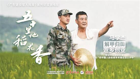 “粮食就是命”,简单的五个字是广东退役军人风采系列微电影《五十里地稻花香》中的一句台词。当年,影片原型马学杰就是因为这句话放弃了众多工作机会,扎根于哺育他的那片农田,这一干就是将近20年。他认为,作为一名退役军人,也应该为国家的粮食安全贡献一份力量。他成立的农业合作社,服务了周边2600多户种植大户,带动了村民增收致富。