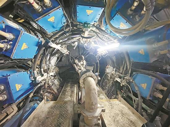 与此同时,在几十公里外的广州南沙粤海水务珠三角供水有限公司,一块长约10米、高约3米的智慧电子显示屏上,这场“海底鹊桥会”的数据闪烁:盾构机掘进速度、探头温度、压力、硬度指标一目了然,甚至此前就可通过大数据分析预估距离隧洞掘进工作进程。