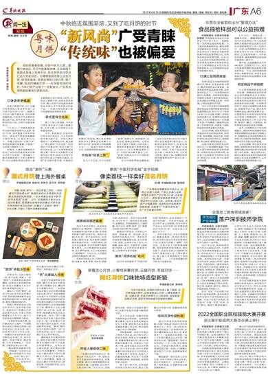 在梅州,大埔省级蜜柚现代农业产业园内的通美食品有限公司生产车间里,一块块融入了梅州金柚的柚子月饼正新鲜出炉;中山品牌咀香园与贵州六盘水刺梨联合进行深加工研究,开发出了刺梨月饼;曲奇皮的坚果月饼、桃山皮类月饼是惠州深港食品有限公司今年研发出的新产品……有地方特色的新口味月饼逐渐受到消费者喜爱。