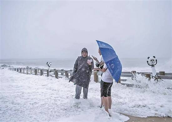25日8时许,记者来到茂名市童子湾时,童子湾附近风力雨势不断增强,海浪击打在岸边礁石时,激起2到3米高的浪花。在中国第一滩景区,景区大门拉起铁马禁止游客进入,工作人员24小时值班并在景区内巡逻。在勤海码头,进出通道也拉起警戒线,茂名市电白区农业农村局工作人员正在值守,防止船员回流。
