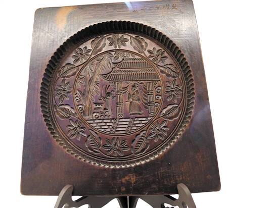 有着上百年历史的“月宫玉兔捣药板式月饼模”