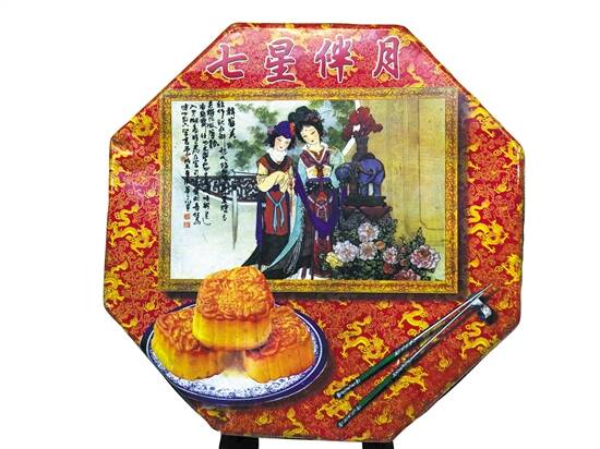 1906年的“月宫玉兔捣药板式月饼模”是这次版本展最珍贵的展品之一。这一清代晚期月饼模有着长35cm、宽29cm的长方形外体,饼心内嵌直径25cm的圆形,饼心花纹为嫦娥在月宫凉台内翩然起舞、玉兔在桂树下捣药的场景,月宫的台阶都清晰可见,饼心外圈还装饰着美丽的花朵草木图案,样式十分典雅。