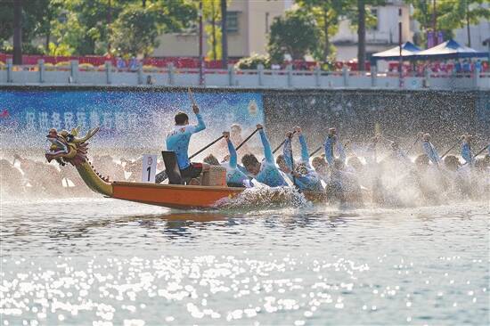 佛山队在龙舟男子100米项目中凭借超强的实力夺得冠军