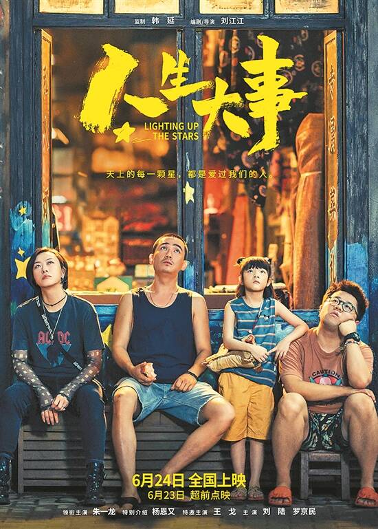 6月24日上映的《人生大事》是今年暑期档的第一个惊喜。影片热度从档期开始前延续到8月初,经历两次密钥延期,在暑期档“霸屏”至《独行月球》成功“接棒”。《人生大事》由朱一龙和小演员杨恩又领衔主演,讲述殡葬师莫三妹在刑满释放不久后的一次出殡中遇见孤儿武小文,后者意外地改变了莫三妹对职业和生活的态度。该片是刘江江的导演编剧处女作,监制韩延曾执导过同样聚焦生死题材的《滚蛋吧!肿瘤君》和《送你一朵小红花》。如今,《人生大事》票房达17.1亿元,超越14.32亿元的《送你一朵小红花》,成为中国影史家庭片票房新冠军。该片口碑同样不俗,豆瓣评分7.3分,猫眼和淘票票则双获9.5分。
