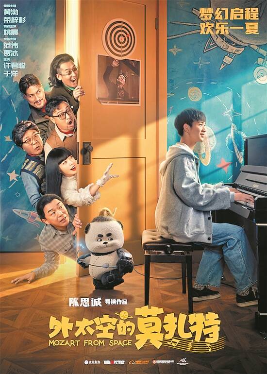 陈思诚执导的《外太空的莫扎特》,则是科幻片在青少年题材上的创新尝试。影片讲述望子成龙的父亲想把儿子培养成下一个郎朗,但儿子却偏偏对地外文明感兴趣,直到有一天真的有个外星人从天而降的故事。该片在视觉呈现方面下了不少功夫,呈现了诸如从高楼窗口展开的书籍天梯、在城市上空飞翔的玩具船、在长城上方绽放的星空图等奇观。不过,该片剧情元素芜杂,目标受众不清晰——既想用童趣童真来吸引小观众,又想用教育话题来吸引成年观众,最终两头不讨好。即使有黄渤这样的国民级笑星加盟,《外太空的莫扎特》最终也只收获了2.23亿元票房,豆瓣评分仅4.4分,为国产科幻片的创作留下了不少宝贵教训。