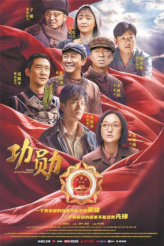 《功勋》由郑晓龙担任总导演,毛卫宁、沈严、林楠、杨文军、康洪雷、阎建钢、杨阳、郑晓龙担任单元导演、王雷、雷佳音、郭涛、黄晓明、蒋欣、佟大为、周迅、黄志忠等众多实力派演员主演,共48集,分为八个单元,八位著名导演用不同的叙事风格讲述了李延年、袁隆平、申纪兰、屠呦呦等八位中华人民共和国功勋人物人生中最精彩的故事。该剧去年9月26日一经播出就赢得观众的广泛赞誉,豆瓣评分高达9分,成为单元式主旋律电视剧的扛鼎之作。