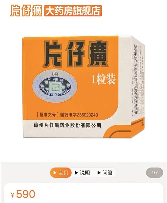 在线上,在片仔癀大药房旗舰店,该药同样货源充足,价格与线下相同。不过,在非旗舰店,价格有所波动,单粒片仔癀价格在590元至720元之间,但均未像去年那样突破千元。