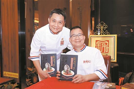 粤菜大师欧锦和(右)出席广东科技出版社《欧锦和经典港式粤菜技法》新书首发式