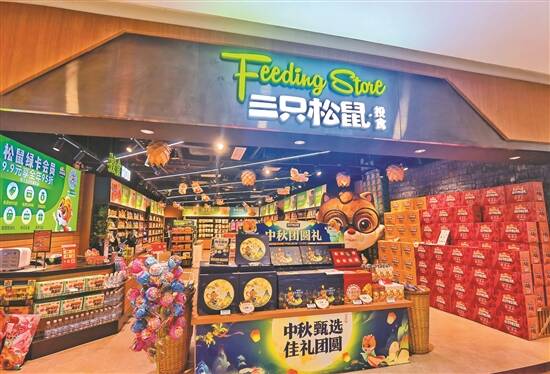 8月23日,记者来到位于广州北京路的一家三只松鼠官方直营门店,这家线下门店于2019年8月开业,是地图显示的三只松鼠在广州仅有的三家线下店之一。和大部分的三只松鼠门店一样,摆在最外面的是礼包类,店内产品多为坚果炒货、饼干膨化等。据店员称,每天的客流量大约几百人。工作日下午5点左右,相比隔壁扫货猫,记者发现三只松鼠店内的客流量并不算多,近20分钟时间仅有两对情侣购物。