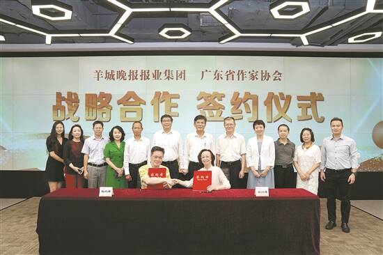 羊城晚报讯 记者孙磊、通讯员何小流报道:9月2日下午,羊城晚报报业集团与广东省作家协会在广州举行签约仪式,双方签订《羊城晚报报业集团 广东省作家协会战略合作框架协议书》,建立长期战略合作伙伴关系,共同推动广东文学的繁荣发展。
