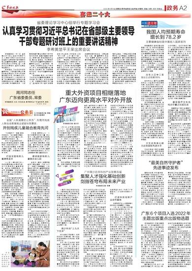 羊城晚报讯 记者孙磊报道:9月7日,中央宣传部办公厅印发通知,公布2022年主题出版重点出版物选题入选名单。广东共3家出版社6个项目入选,在地方出版集团排名中并列第二。