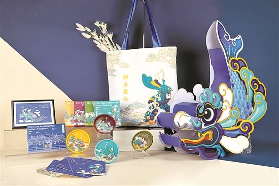 广东民间工艺博物馆馆长黄海妍介绍,他们以岭南建筑艺术的明珠——陈家祠为模型,设计了一套文创积木。积木将陈家祠建筑复刻到拼图上,将其首进屋舍细致还原,再现传统岭南建筑,让人们在一叠一砌中了解岭南建筑文化。陶塑脊饰更是陈家祠的一大亮点,这些蕴含吉祥寓意的陶塑“神兽”不再只停留在高高的屋脊,摇身一变,也成为了可以带回家的特色文创。
