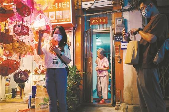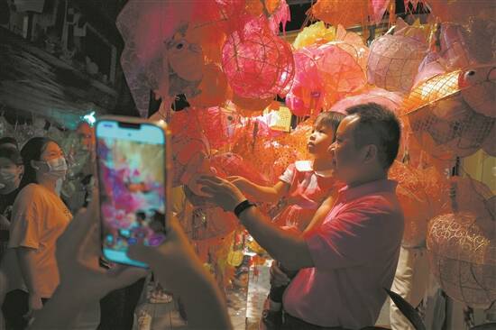 从起义路走向光孝路,宁家里的手扎灯笼在中秋月圆之时再次点亮。彭少英经营了28年的天就行人头涌涌,莲花灯、锦鲤鱼、玉兔灯、杨桃灯……各种手扎灯笼挂满店铺内外,吸引广州乃至周边城市的市民前来购买。