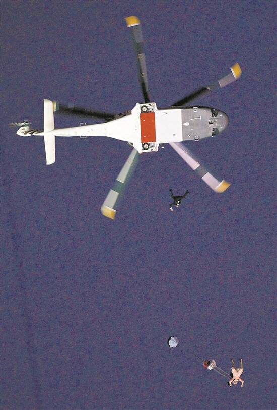 伦敦奥运会开幕式,“邦德”和“女王”的替身从直升机上跳伞而下