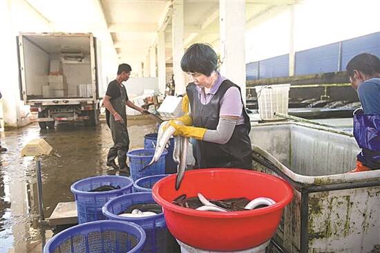 永兴水产养殖基地工人正在打包活鱼 受访者供图