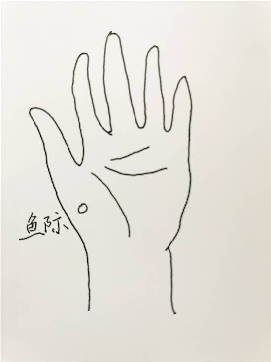 推荐穴位:鱼际穴(第一掌骨中点的桡侧旁赤白肉际处)