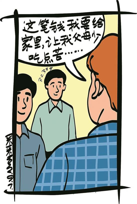 当车间的工友知道他中了大奖后,都说:你有了这笔钱,可以买高档衣服穿,去大饭店吃大餐,去买自己想要东西了。王林听了说:“这笔钱我要给家里,让我父母少吃点苦,少受点累,更重要的是有了这笔钱帮弟弟安心完成学业是我最大的心愿,我是不会轻易乱花的,我觉得还是安心上班的好!” (汪小弟)