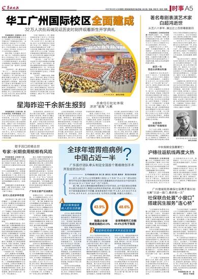 羊城晚报讯 记者孙唯,实习生陈雨瑶、何伊琪报道:金秋九月,正值全国各高校迎新开学的时刻。9月13日,中国著名的音乐类高等学府——星海音乐学院也迎来了新生报到的时刻。建校于1957年的星海音乐学院现有大学城和沙河两个校区,共设18个本科院系(部),今年新生总人数达到1600多人,其中大学城校区迎来1000多名新生。当天上午,羊城晚报对新生报到情况进行了现场直播。