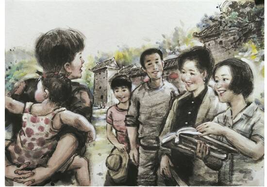 “杨老师的故事让我特别感动,我还想起了一部老电影《乡村女教师》。”陆佳是中国美术家协会会员、深圳画院专业创作画家。深圳市委宣传部、深圳市文联等多部门联合主办“因美之名——深圳市对口帮扶成果主题美术创作展”,陆佳在参与作品创作时,关注到媒体对于杨汇滢的相关报道。征得了杨汇滢本人的同意,深受感动的陆佳将其支教经历画成了水墨连环画。