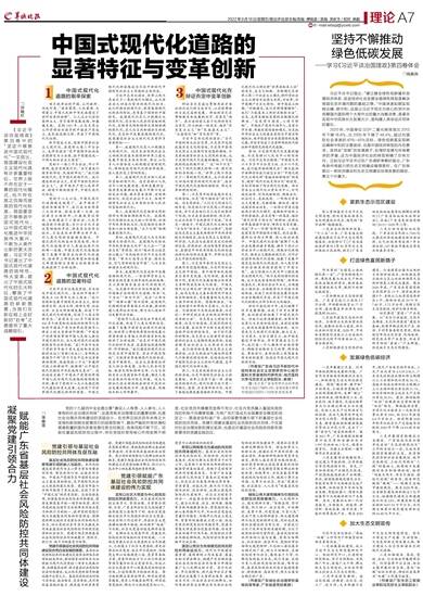 《习近平谈治国理政》第四卷中的“坚定不移推进中国式现代化”一文指出,我国建设社会主义现代化具有许多重要特征。世界上既不存在定于一尊的现代化模式,也不存在放之四海而皆准的现代化标准。我国要坚定不移推进中国式现代化,以中国式现代化推进中华民族伟大复兴,不断为人类作出新的更大贡献。习近平总书记道出了中国式现代化道路的独特性、伟大变革,提出了中国式现代化的五大特征,擘画了中国式现代化道路的崭新图景,为我们在新征程上走好新的“赶考”之路提供了重大战略指引。