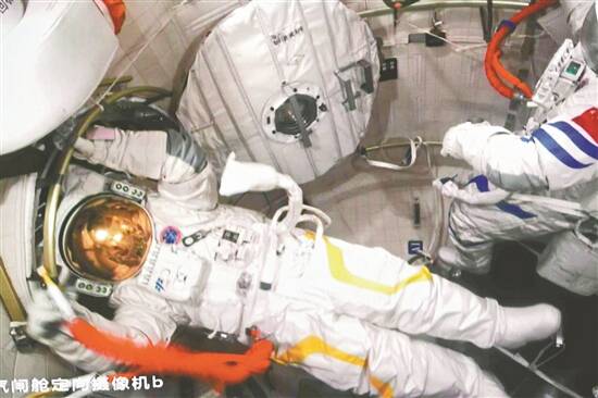 航天员蔡旭哲结束出舱任务返回问天实验舱的画面 图/新华社