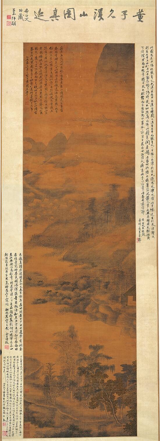 黄公望(1269-1354),本名陆坚,世居江苏常熟,后嗣于浙江永嘉黄氏,遂改姓黄,字子久,号一峰、大痴道人等。黄氏曾受赵孟頫影响,上师董源、巨然等诸名家,晚年大变其法,自成一家,被推为“元季四大家之冠”,晚年以《富春山居图》留名于史。