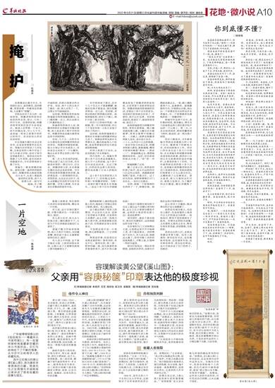 容璞告诉记者,《溪山图》是容庚生前的重要藏品。“‘容庚秘箧’是父亲对极为珍视的藏品所用的印章。”容璞说,在《溪山图》上钤有此印,足见容庚对这件作品的认可。在晚年自传中,容庚也曾检视个人珍藏,其历代画作中最得意者,就是“黄公望山水半幅,有恽寿平题跋”。容璞说,这件老人家的生前所珍,早年经其亲自捐赠,已永远属于国家。