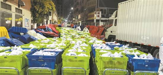 叮咚买菜的一位“95后”女区域主管张意梓,就参加了今年3月福田上下沙疫情保供套餐的配送工作。保供套餐中常有大米等重点物资,加起来重量常常超过50斤。张意梓没有嫌重,和同事们一趟趟地卸货、分发,常常搬到半夜。张意梓负责的城中村区域,通道往往比较狭窄,她和同事们还要帮忙疏通过道,常有磕碰,几天下来腿上出现了一块块淤青紫。和张意梓一样,很多一线工作人员都身兼数职,吃住在站里,全力保障用户在特殊时期的基础食材供给。