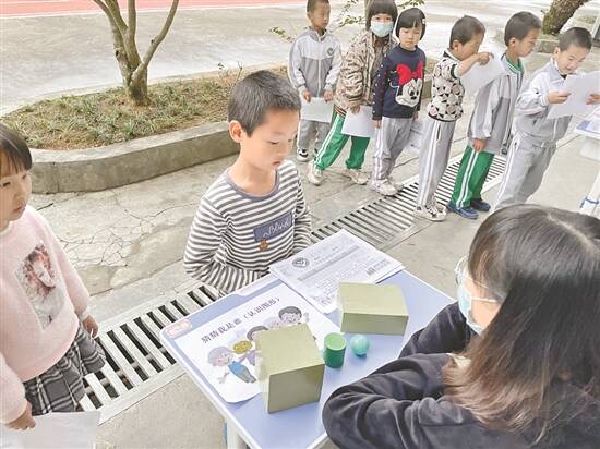 黄畲中心小学党支部书记、校长谢增芬介绍:“快乐测试采用趣味闯关的形式,通过口头表达和动手操作的方式,依次进行一、二年级不同学科的测试,传统的纸笔测评化身为一个个好玩的闯关游戏,既减轻了孩子们的学习压力,又有益于孩子们综合素质的发展。”