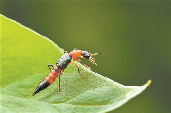 该院皮肤科主任雷水生介绍,从外表来看,隐翅虫是一种黑色蚁形的小飞虫,体长约0.6厘米-0.8厘米,头为黑色,胸部桔黄色,躯干呈黄黑相间的条纹,鞘翅平时覆盖在前腹部,习惯于昼伏夜出,白天栖居于潮湿的阴暗处,夜晚出来觅食,喜光。