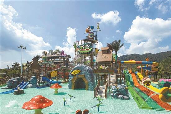 不断完善儿童游乐和拓展设施是温泉酒店吸引家庭游客的利器,图为广州森林海大型室外温泉嬉水乐园