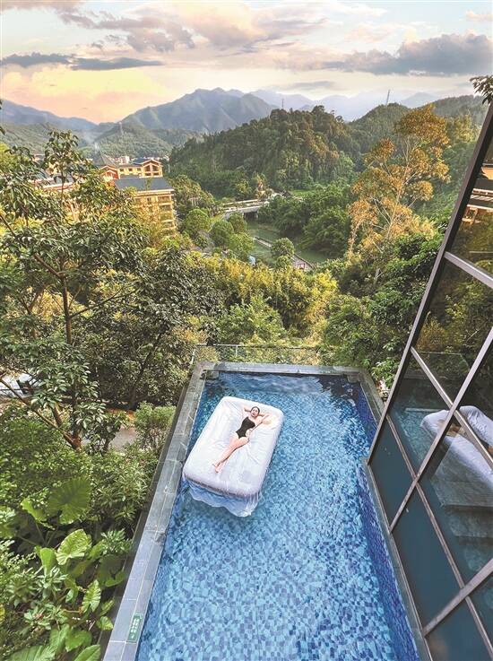 而坐落在享有“温泉之乡”盛誉清远市清新区三坑镇的清远古龙峡河中温泉VLOG酒店,首期只有20套设计时尚宽敞的独栋温泉别墅、2套温馨别致的树屋客房、3套野趣十足的帐篷客房,自今年中开业以来,入住率一直保持在高位。酒店负责人徐伟跃表示:“中秋节假期满房,国庆假期预计也差不多。”