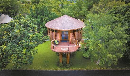 打造网红元素也是温泉景区“吸睛”手段之一,图为河中温泉温馨别致的树屋客房