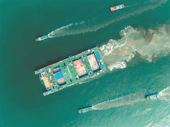 浮运安装一体船正提带深中通道沉管隧道E21管节进行浮运作业 苏振飞 摄