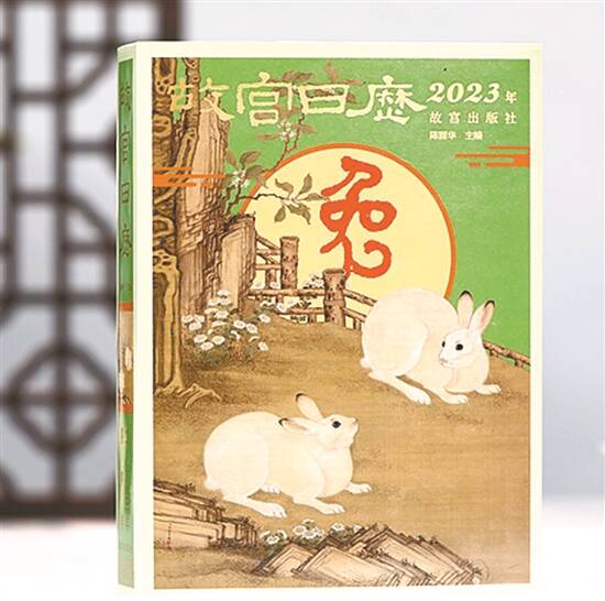 日历的封面源于故宫博物院的绘画藏品——清代宫廷画家冷枚的《梧桐双兔图》轴。一轮满月中的“兔”字系故宫博物院藏石鼓文字体,古朴大气之中别具灵动。