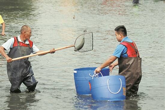 “抢丰收·捉塘底”趣味比赛现场 羊城晚报记者 梁正杰 摄