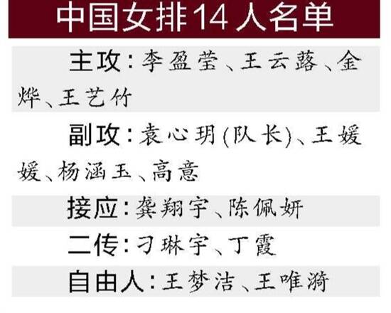 在这份14人名单中,队长袁心玥是世锦赛的“三朝元老”,参加过2014和2018年世锦赛。丁霞、龚翔宇、李盈莹、王梦洁、杨涵玉参加过2018年世锦赛,另外八名队员则是首次出征世锦赛。在朱婷和张常宁均缺席的情况下,主攻李盈莹将承担球队核心的作用。