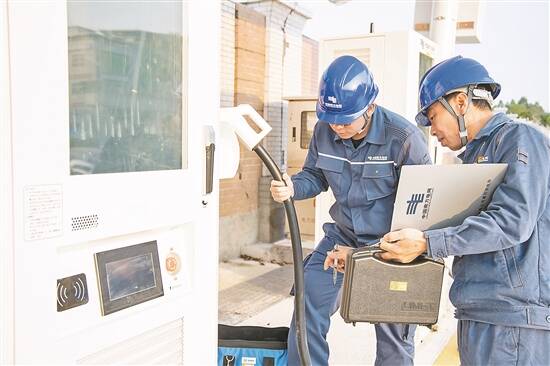 惠州惠阳供电局良井供电工作人员对乡村充电桩开展安全用电检查 (曾韵诗 摄)