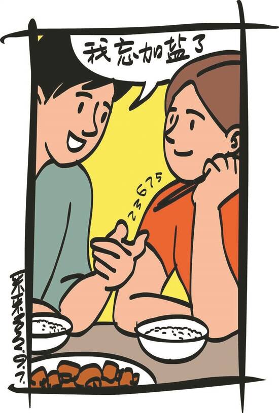 “老公,这排骨怎么没味道?”咬了一口排骨的李岚娇嗔地问。“哎哟,我这脑袋,你这一闹腾,我忘加盐了。”一家人哈哈大笑起来。“老公,一会儿遛弯时,咱再买两注彩票,作为对你不嫌糟糠之妻的奖励。” (朱延嵩)