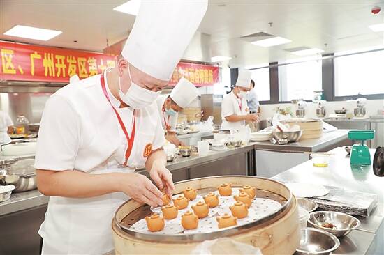 “我喜欢茶壶包的外形和寓意。”来自达康经济公司的潘海周今年第4次参加“技术能手”大赛,这次带来的自选参赛项目是象形茶壶包。“前两个月就着手准备了,希望能通过大赛和更多同行高手切磋面点技艺,提升自己的专业水平,给大家带来更好的黄埔点心。”潘海周说。