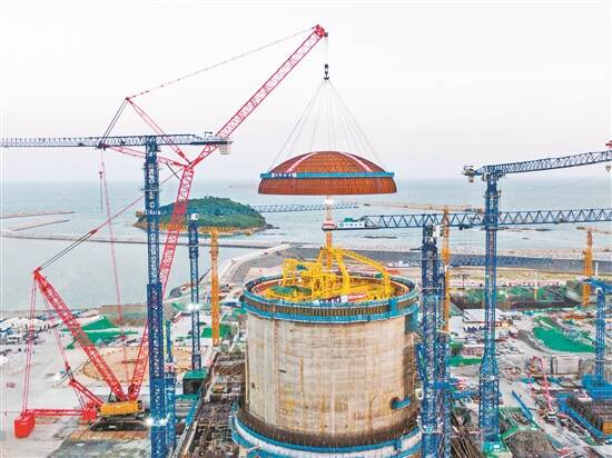 穹顶吊装的完成标志着项目由土建施工阶段全面转向设备安装阶段。据悉,该核电项目一期1、2号机组建成投运后,年发电量将达到168亿千瓦时,三期6台机组全部建成后,年发电量将达到500亿千瓦时,将为粤港澳大湾区经济的可持续发展提供清洁能源,有效改善东南部沿海地区供电结构,助力粤港澳大湾区腾飞,同时也对我国的“双碳”政策具有积极的意义。