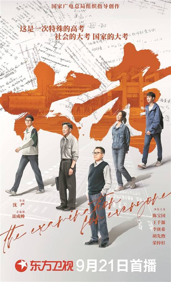近日,备受瞩目的现实主义题材剧《大考》登陆东方卫视等平台。作为“我们的新时代”主题活动展播的优秀剧集,该剧由沈严执导,申捷担任艺术总监,陈宝国、王千源、李庚希、胡先煦、荣梓杉领衔主演。剧情以2020年高考为切入点,选取安徽歙县应对疫情防控和突发洪灾高考延考事件为题材,讲述了2020届高考生的故事,展现了疫情大背景下社会各界积极备战高考的真实图景。