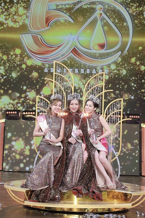 本届港姐冠军林钰洧(中)亚军许子萱(左)季军梁超怡合照