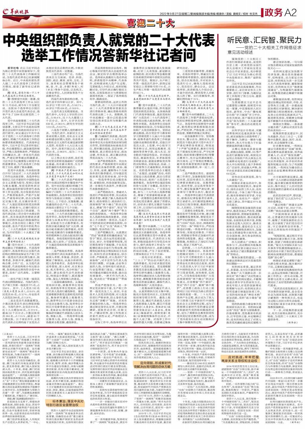中央组织部负责人就党的二十大代表选举工作情况答新华社记者问
